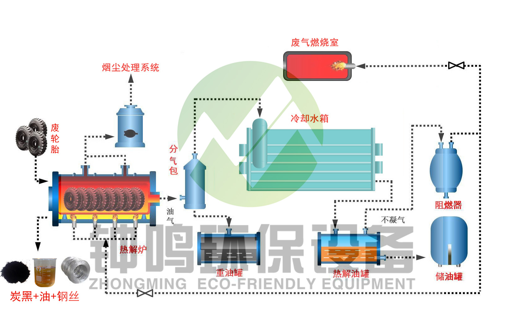 第 5 步:出渣(炭黑) ---- 自動排出的渣由負壓風送設備通過管道輸送到儲渣倉,確保出渣過程無塵。